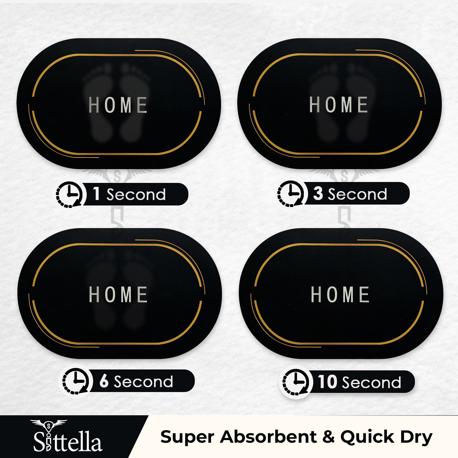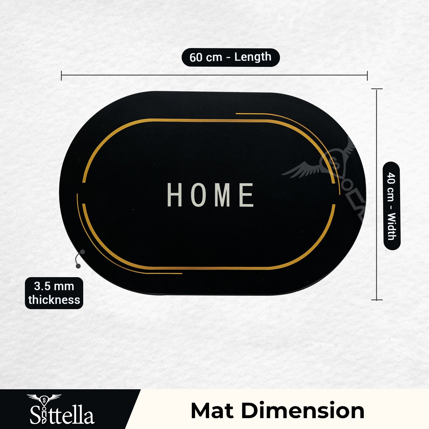 Anti-Skid Water Soaking Oval Home Print Rubber Mat, Water Absorbent Mat (40x60cm) (Black)