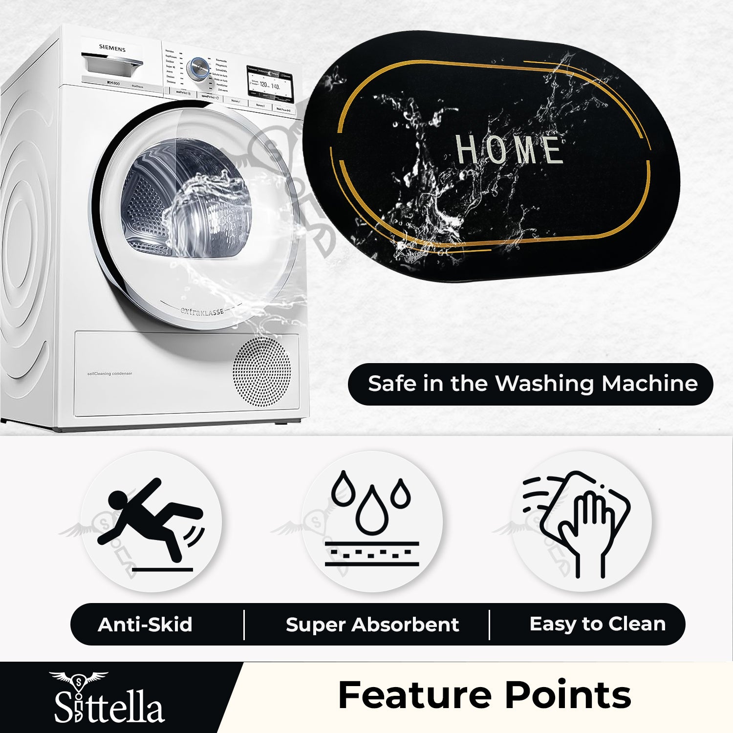 ✅ MATERIAL: Rubber mat has 4 layers: soft nubuck tech fabric top, diatomaceous earth layer for quick drying, recycled sponge layer for cushioning, and non-slip rubber sole bottom for safety in the bathroom. ✅ MAT FEATURES: This rubber mat absorbs water quickly, so it won’t get your floor wet and save you from skidding. And stain will not remain on it you can easily remove the stain. ✅ DURABILITY: This rubber bath mat has a durable backing that prevents water seepage and it doesn't emit unpleasant odors even when wet for long. ✅ SIZE & COLOUR: The water soaking mat is backed by thick rubber (3.5 mm) which stops water from penetrating the surface, Product Dimensions -60L x 40W CM, Black. ✅ MACHINE WASHABLE: Our bathroom mat is designed to be easy to clean. Simply toss it in the washing machine with cold water and a mild detergent, and then either tumble dry it at a low speed or hang it up to dry.