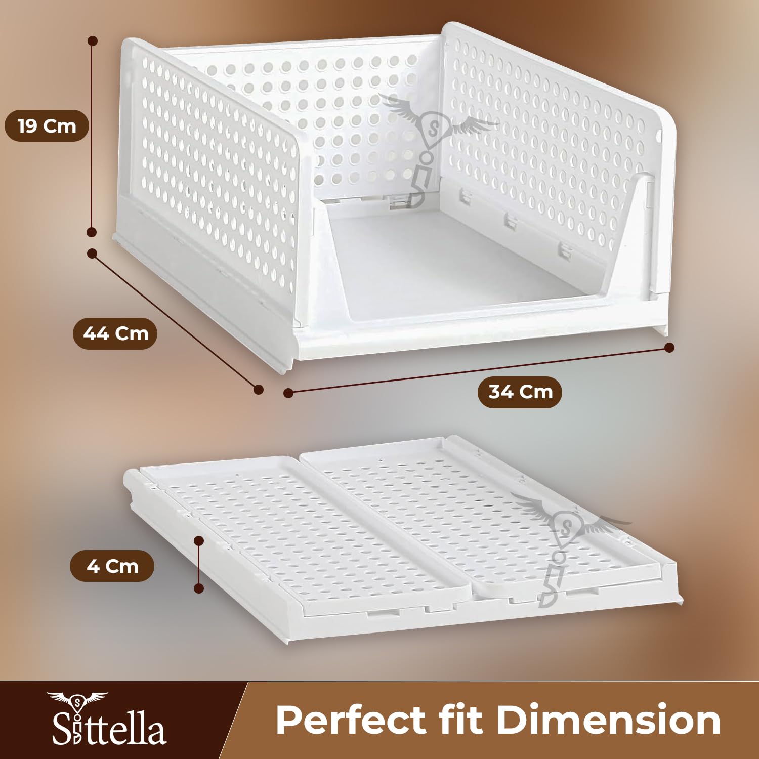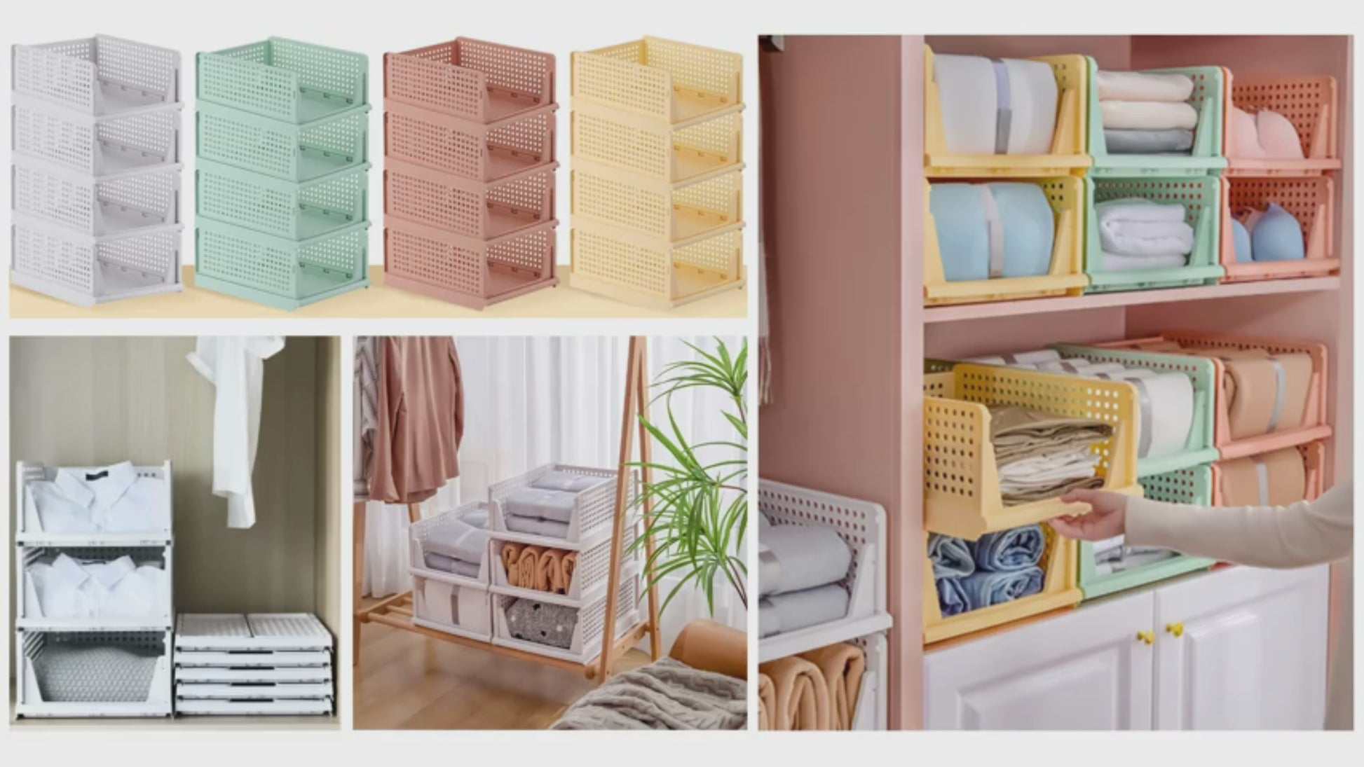Multi-Functional: The closet organizers and storage box are convenient to store your lightweight items such as shoes, clothes, toys, snacks, file etc. Perfect for your home , bedroom, bathroom, kitchen, living room, office or study areas. Stylish neutral style, suitable for any place.   Easy to Install: Wardrobe clothes organizer,easy to Install, easy to fold follow the steps in pictures. when you don’t use it, put it together in a corner without taking up space.   Stackable: wardrobe storage shelves can be stackable. Freely stacked storage, you can stacking multi-layer wardrobe storage organizer according to your needs. Each:16.92" x 13.19" x 5.5" (L x W x H).     Durable & Sturdy :  Made of PP plastic which is waterproof and durable, only wipe it with wet cloth for daily cleaning. Reinforced side seams, giving you long lasting use, environmental protection and saving money and effort.   Pls Note : The storage basket cannot slide out completely like the drawer. If you need to pull out, please support it against the wall, hold the drawer in place with one hand and only pull the top of unit out with the other hand.