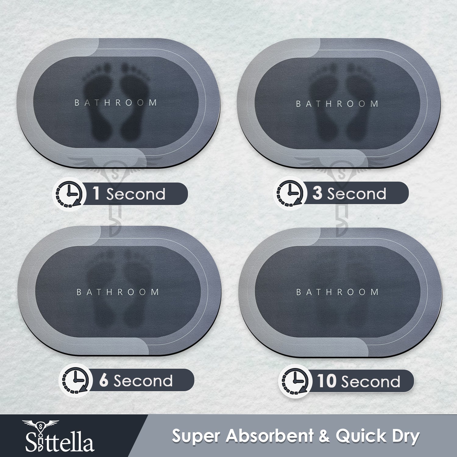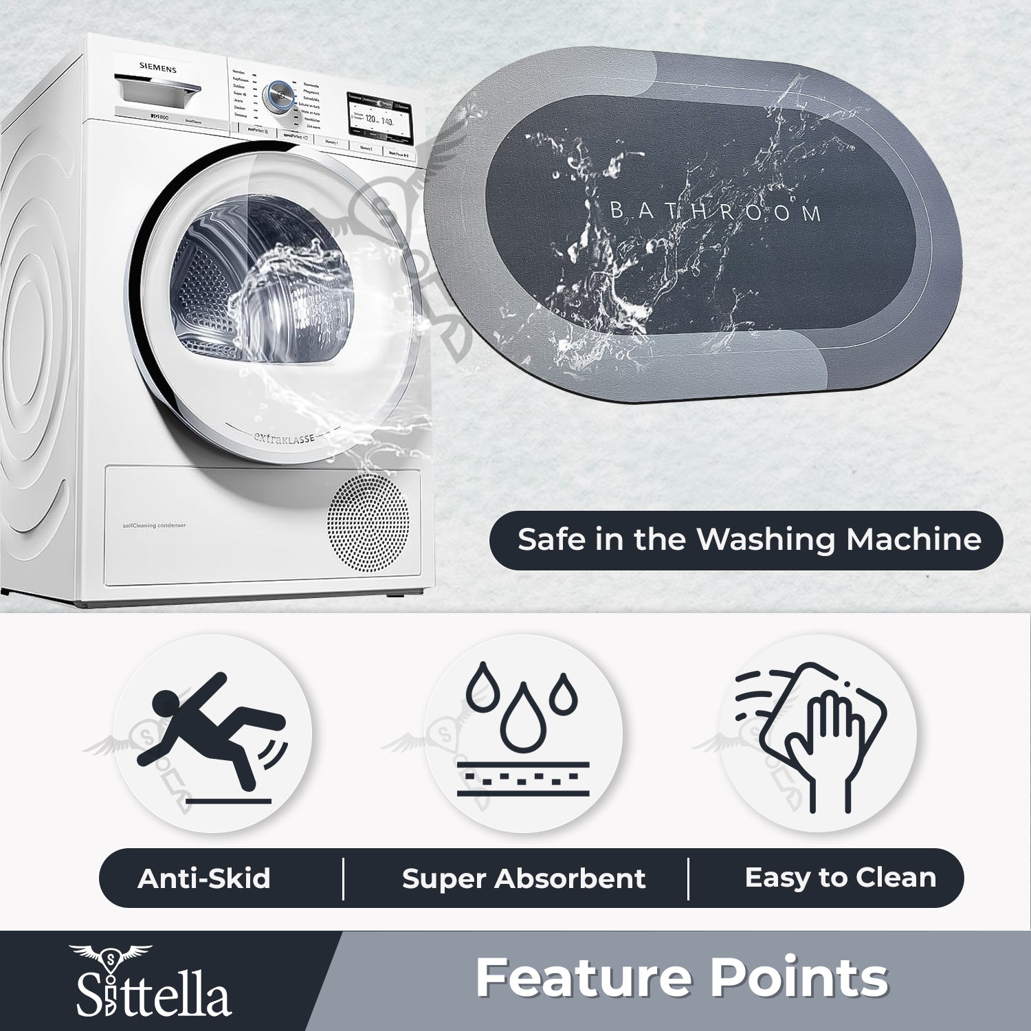 ✅ MATERIAL: Rubber mat has 4 layers: soft nubuck tech fabric top, diatomaceous earth layer for quick drying, recycled sponge layer for cushioning, and non-slip rubber sole bottom for safety in the bathroom. ✅ MAT FEATURES: This rubber mat absorbs water quickly, so it won’t get your floor wet and save you from skidding. And stain will not remain on it you can easily remove the stain. ✅ DURABILITY: This rubber bath mat has a durable backing that prevents water seepage and it doesn't emit unpleasant odors even when wet for long. ✅ SIZE & COLOUR: The water soaking mat is backed by thick rubber (3.5 mm) which stops water from penetrating the surface, Product Dimensions -60L x 40W CM, Black. ✅ MACHINE WASHABLE: Our bathroom mat is designed to be easy to clean. Simply toss it in the washing machine with cold water and a mild detergent, and then either tumble dry it at a low speed or hang it up to dry.