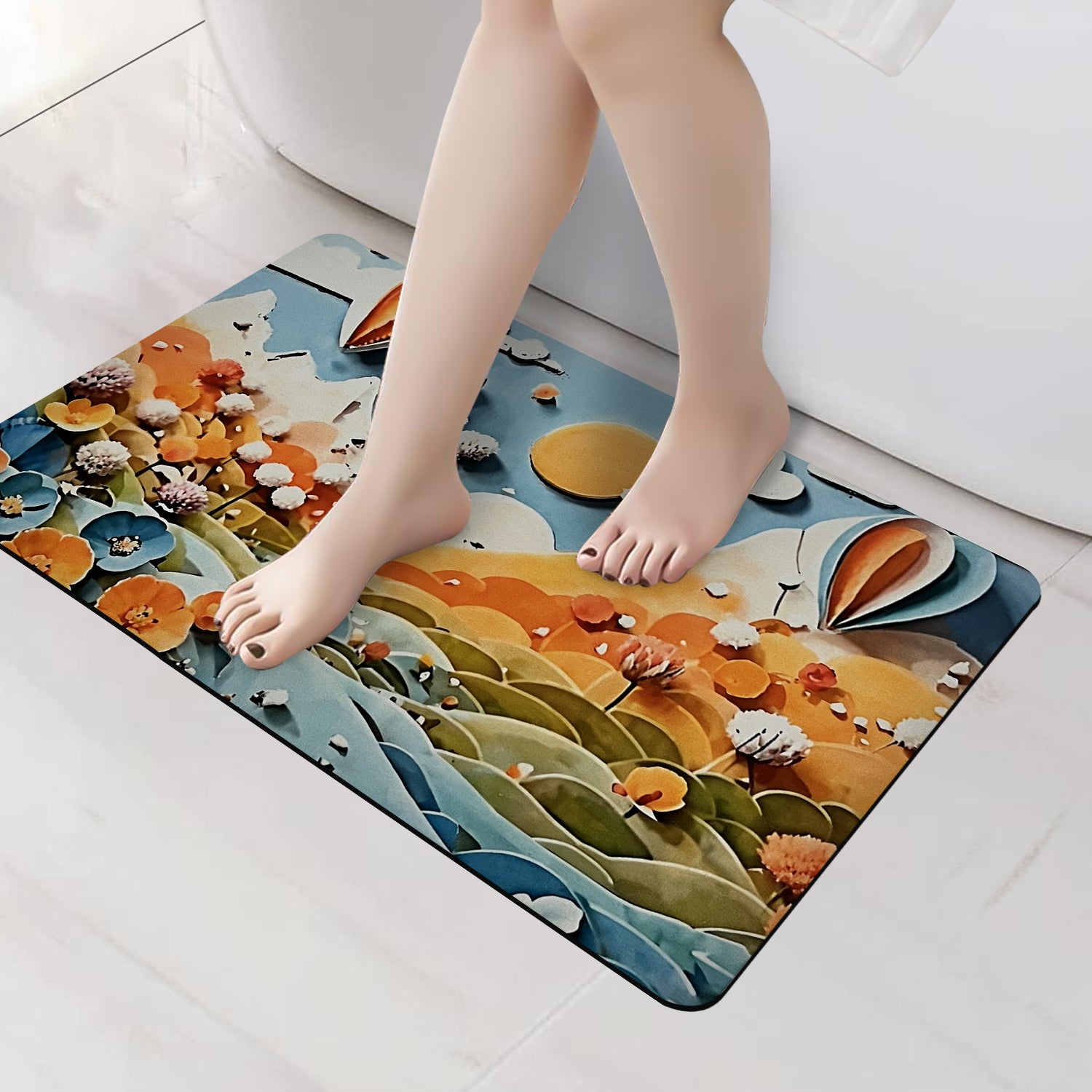 3D Abstract Print Anti-Skid Water Absorbent Bathroom Mat (40x60cm) - Yellow Flower