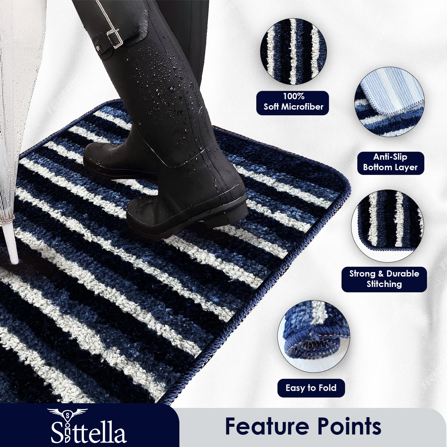 ✅ MATERIAL: The mat is crafted from high-quality microfiber with TPR backing, ensuring durability. The plush microfiber surface offers a soft and comfortable feel underfoot, making it pleasant to step on, even barefoot. ✅ ANTI-SLIP DESIGN: The rubber backing prevents the mat from slipping, providing stability and safety, especially in high-traffic areas like bathrooms and kitchens. ✅ WATER ABSORBENT: With its microfiber construction, the mat effectively absorbs water, keeping floors dry and reducing the risk of slips and falls. ✅ SIZE & COLOR: Dimensions is 35x50cm and 3mm thickness, Blue color. ✅ VERSATILE: Suitable for use in bathrooms, kitchens, and other areas where water spillage or slipping may occur, making it a versatile addition to any home. ✅ EASY MAINTENANCE & DESIGN: Simple to clean with machine washing capabilities, while its attractive design enhances the aesthetic appeal of any space.