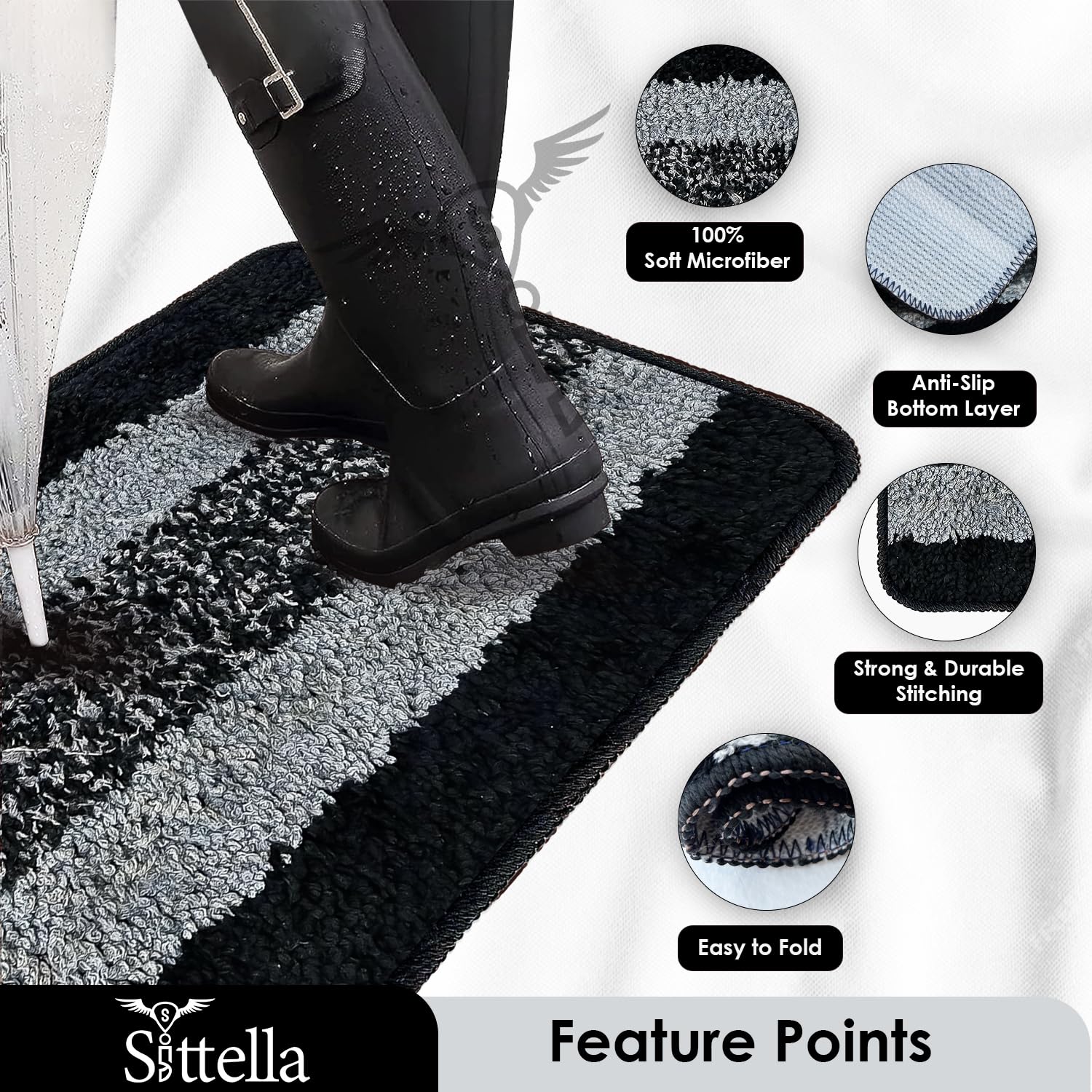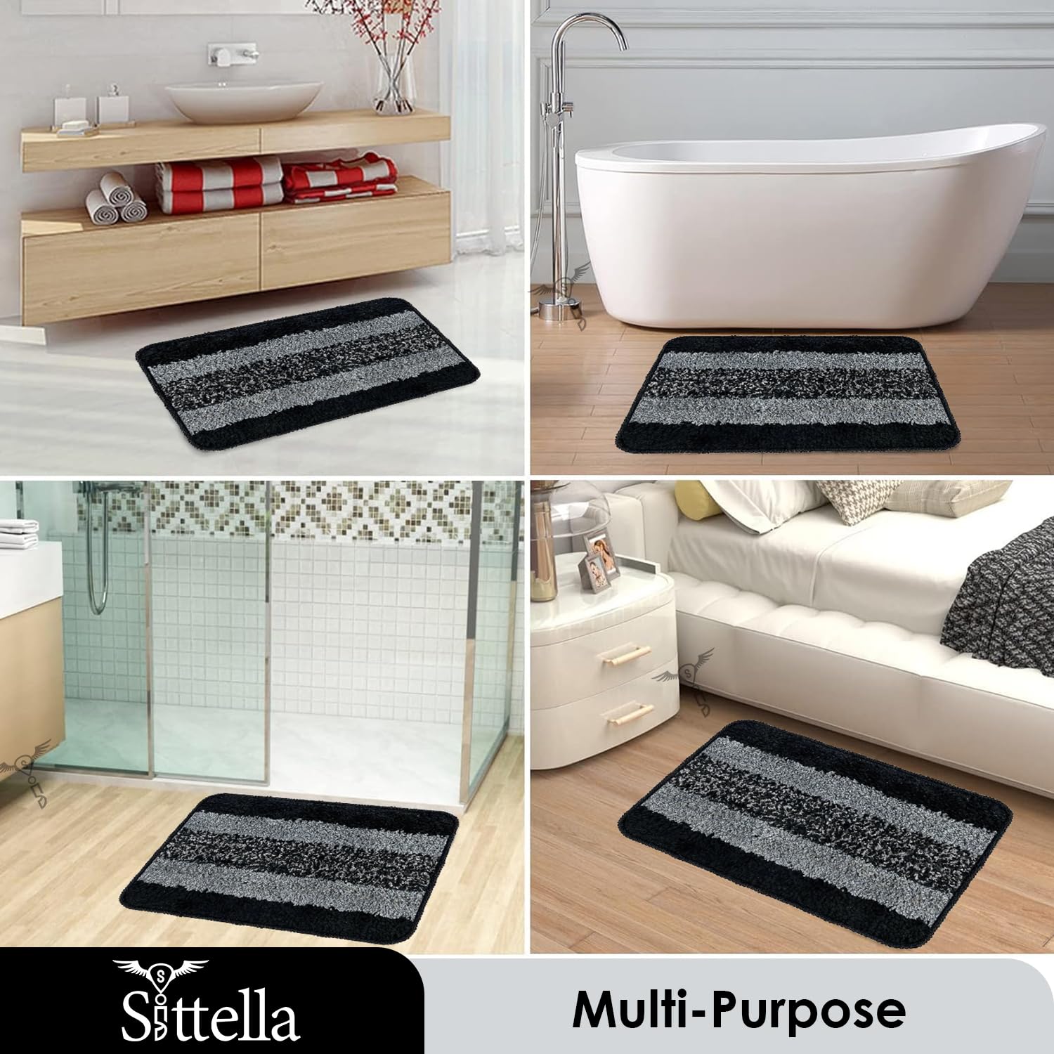 ✅ MATERIAL: The mat is crafted from high-quality microfiber with TPR backing, ensuring durability. The plush microfiber surface offers a soft and comfortable feel underfoot, making it pleasant to step on, even barefoot. ✅ ANTI-SLIP DESIGN: The rubber backing prevents the mat from slipping, providing stability and safety, especially in high-traffic areas like bathrooms and kitchens. ✅ WATER ABSORBENT: With its microfiber construction, the mat effectively absorbs water, keeping floors dry and reducing the risk of slips and falls. ✅ SIZE & COLOR: Dimensions is 35x50cm and 3mm thickness, Black color. ✅ VERSATILE: Suitable for use in bathrooms, kitchens, and other areas where water spillage or slipping may occur, making it a versatile addition to any home. ✅ EASY MAINTENANCE & DESIGN: Simple to clean with machine washing capabilities, while its attractive design enhances the aesthetic appeal of any space.