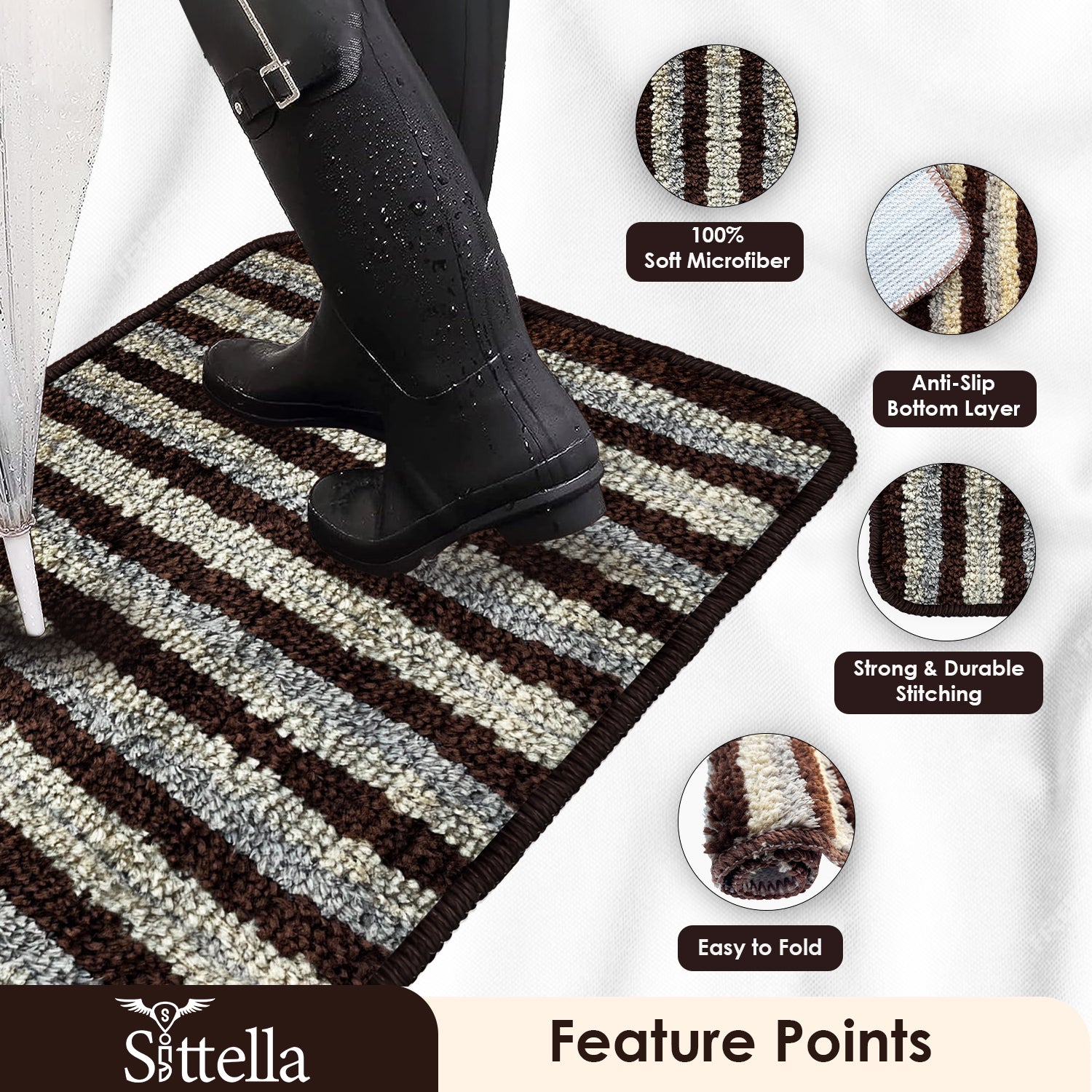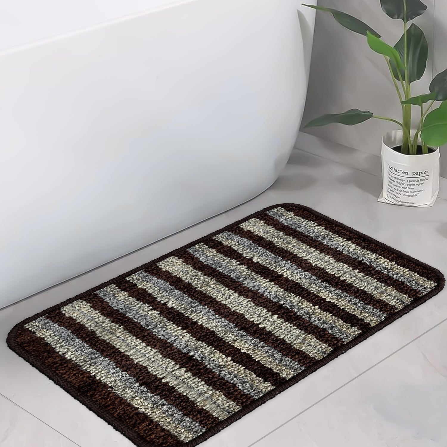 ✅ MATERIAL: The mat is crafted from high-quality microfiber with TPR backing, ensuring durability. The plush microfiber surface offers a soft and comfortable feel underfoot, making it pleasant to step on, even barefoot. ✅ ANTI-SLIP DESIGN: The rubber backing prevents the mat from slipping, providing stability and safety, especially in high-traffic areas like bathrooms and kitchens. ✅ WATER ABSORBENT: With its microfiber construction, the mat effectively absorbs water, keeping floors dry and reducing the risk of slips and falls. ✅ SIZE & COLOR: Dimensions is 35x50cm and 3mm thickness, Brown color. ✅ VERSATILE: Suitable for use in bathrooms, kitchens, and other areas where water spillage or slipping may occur, making it a versatile addition to any home. ✅ EASY MAINTENANCE & DESIGN: Simple to clean with machine washing capabilities, while its attractive design enhances the aesthetic appeal of any space.