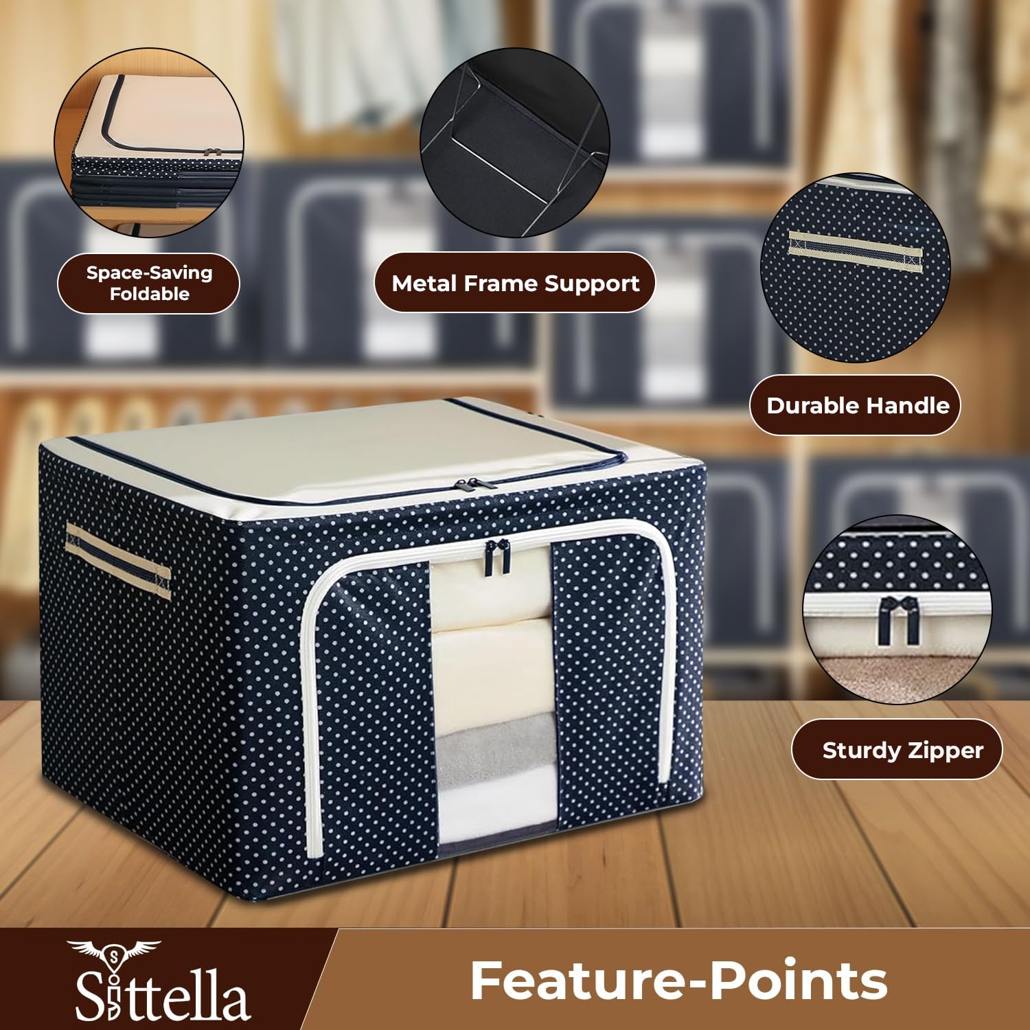 Double-Sided Zipper Wardrobe Organizer - Foldable & Durable Storage Box (Blue)
