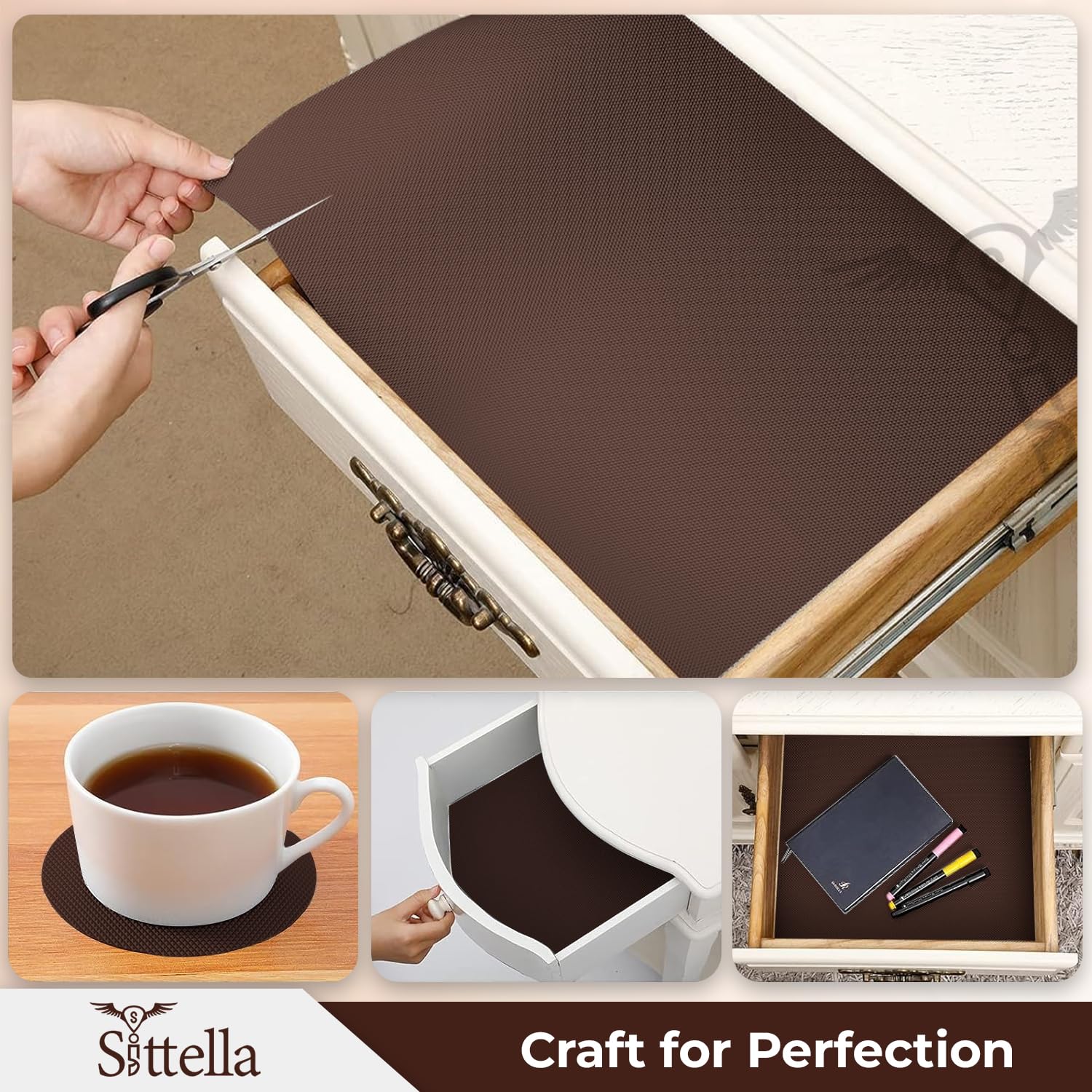 Drawer Mat Multi-Purpose EVA Non-Slip Waterproof Kitchen & Bathroom Shelf Liner (Coffee)