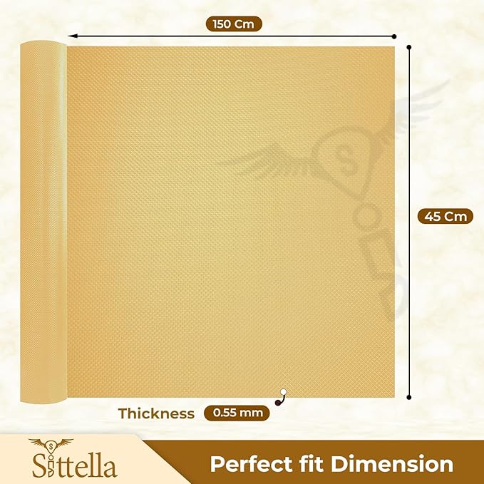 ✅ SIZE & COLOR: Width- 45cm, Length- (150cm/ 1.5m), Color- Ivory ✅ EASY TO CUT: The drawer liner for kitchen is easy to cut and you can cut the kitchen shelf liner casually to DIY home bathroom and kitchen.