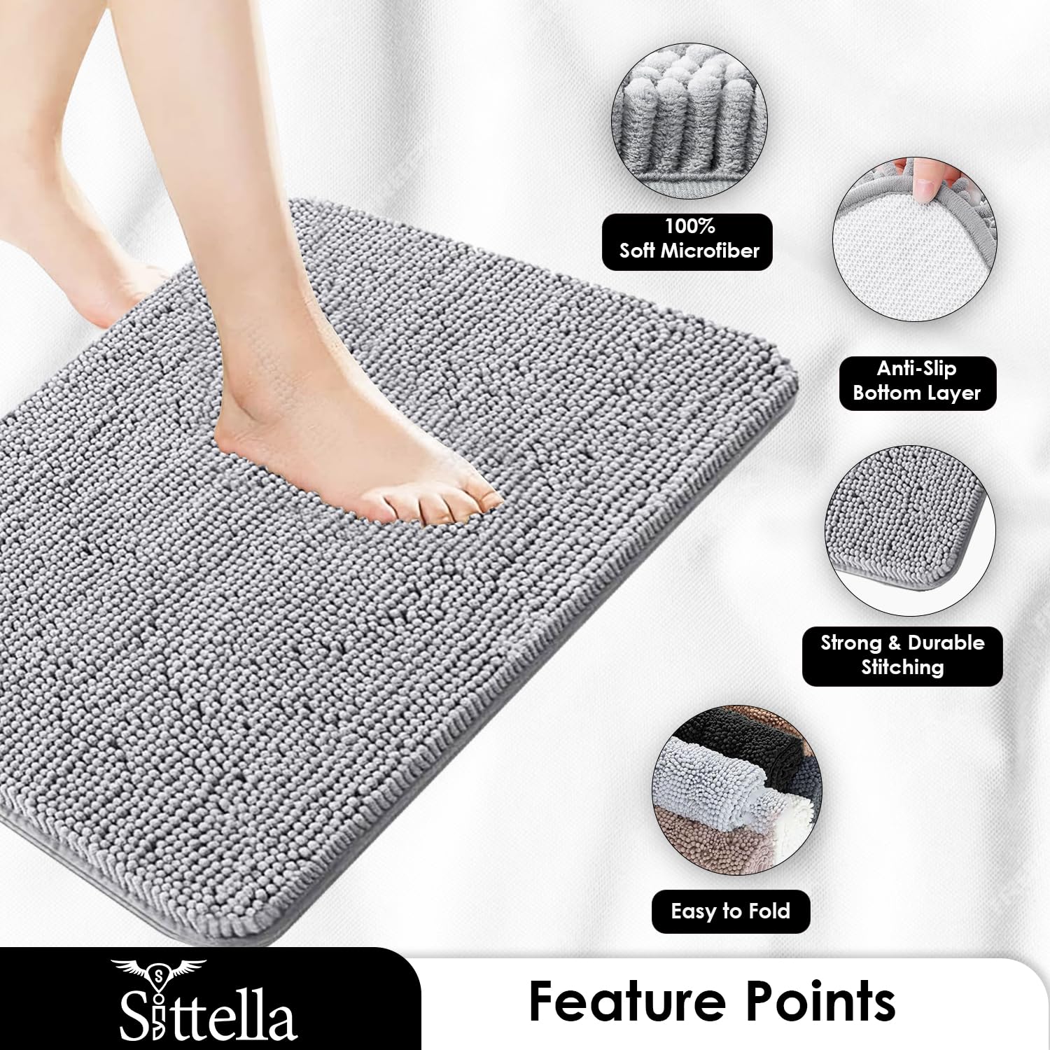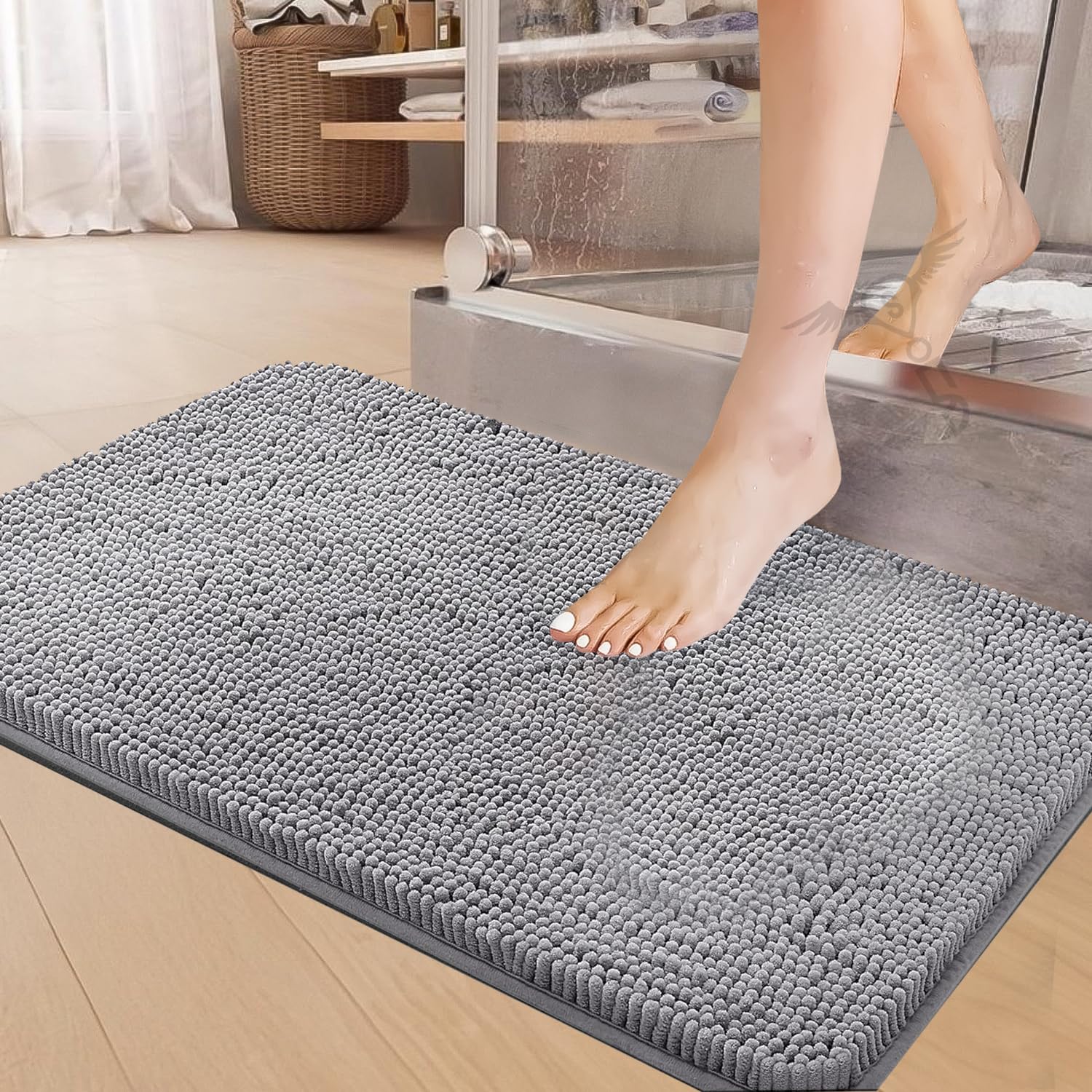 Microfiber Bathroom Door Mat Super Soft Anti Slip Floor Mat for Home Kitchen Bedroom (Grey- 40 x 60 cm)