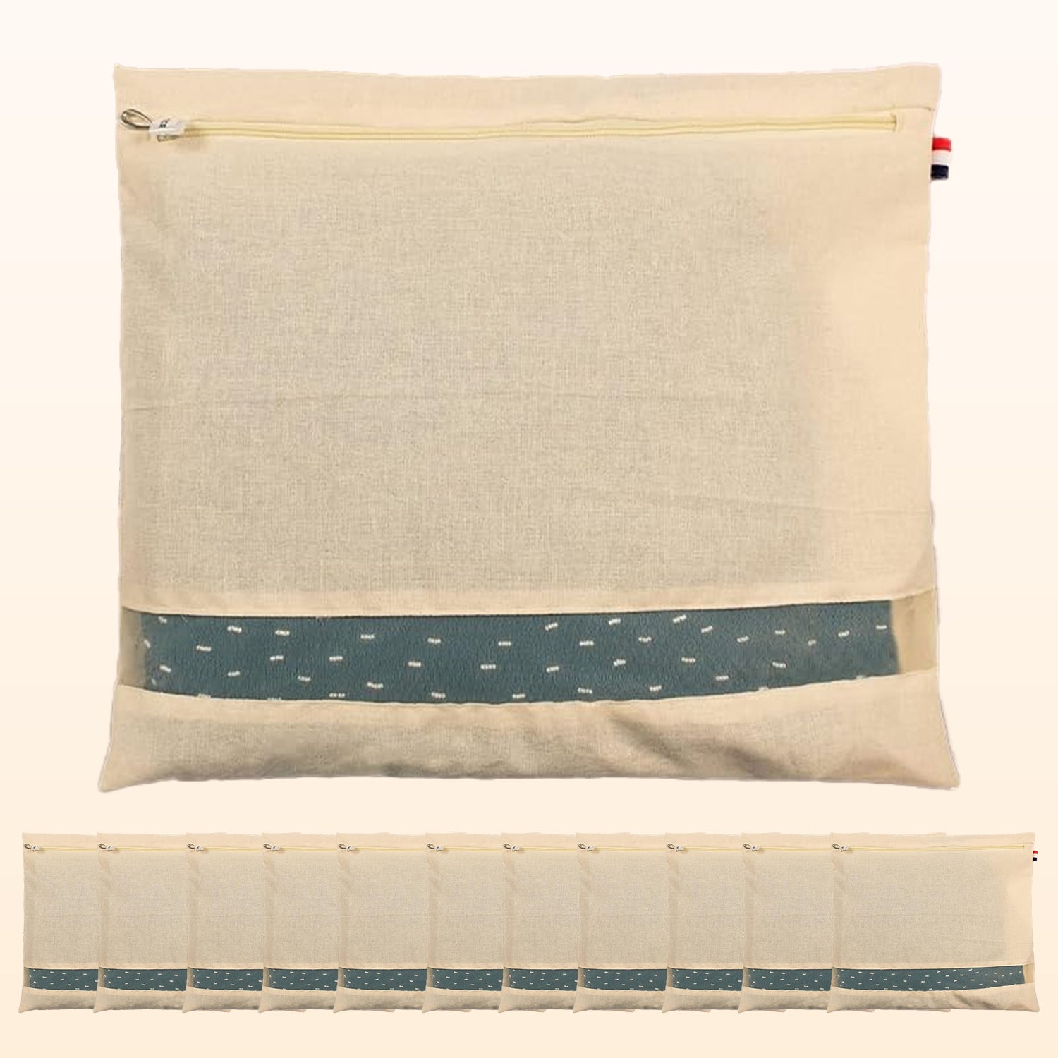 SIZE & QUANTITY DETAILS: The bag is 16 X 14 Inches, and there are a total of 10 units of covers in the package. This ensures the fitting of a huge single saree per bag and two small sarees per bag. EXTRA HALF INCH is given to compromise shrinkage on the first wash. Mesh provided at bottom to see through. The material of mesh is reliable for long use. In extra, we provide a double layer in the mesh part to ensure long-term use.