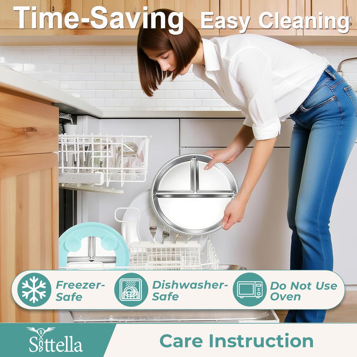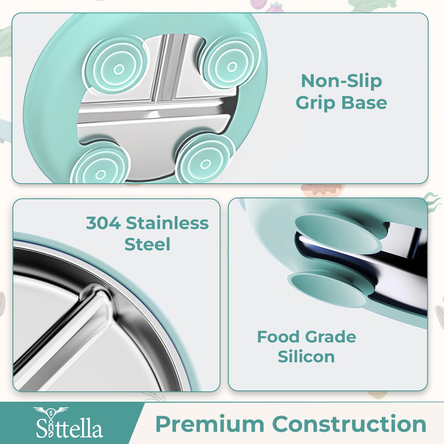 SITTELLA Stainless Steel Baby Suction Plate | Divided Toddler Feeding Plate with Strong Non-Slip Base | BPA-Free, Non-Toxic & Spill-Resistant | Pista green | 1 Piece