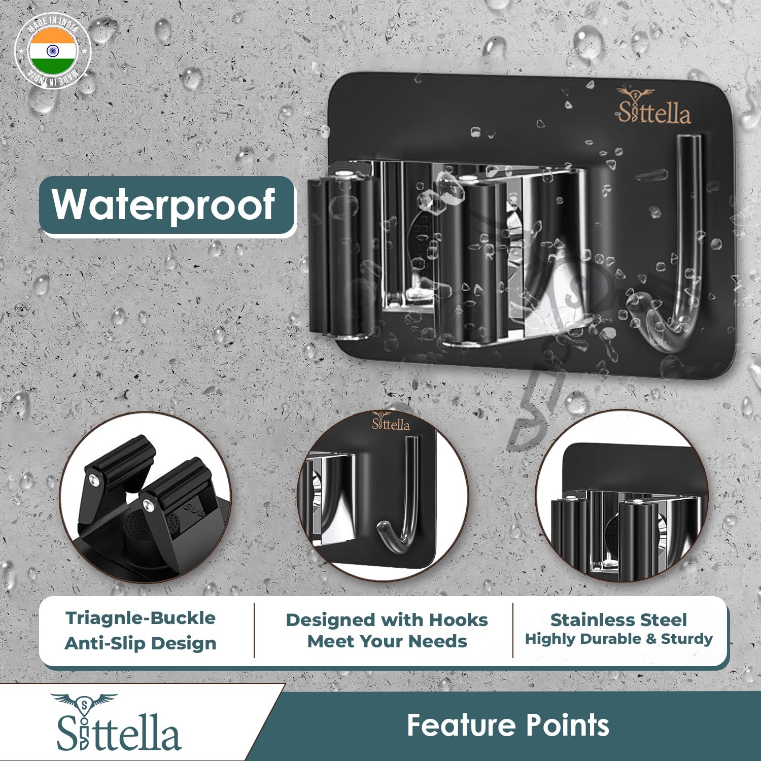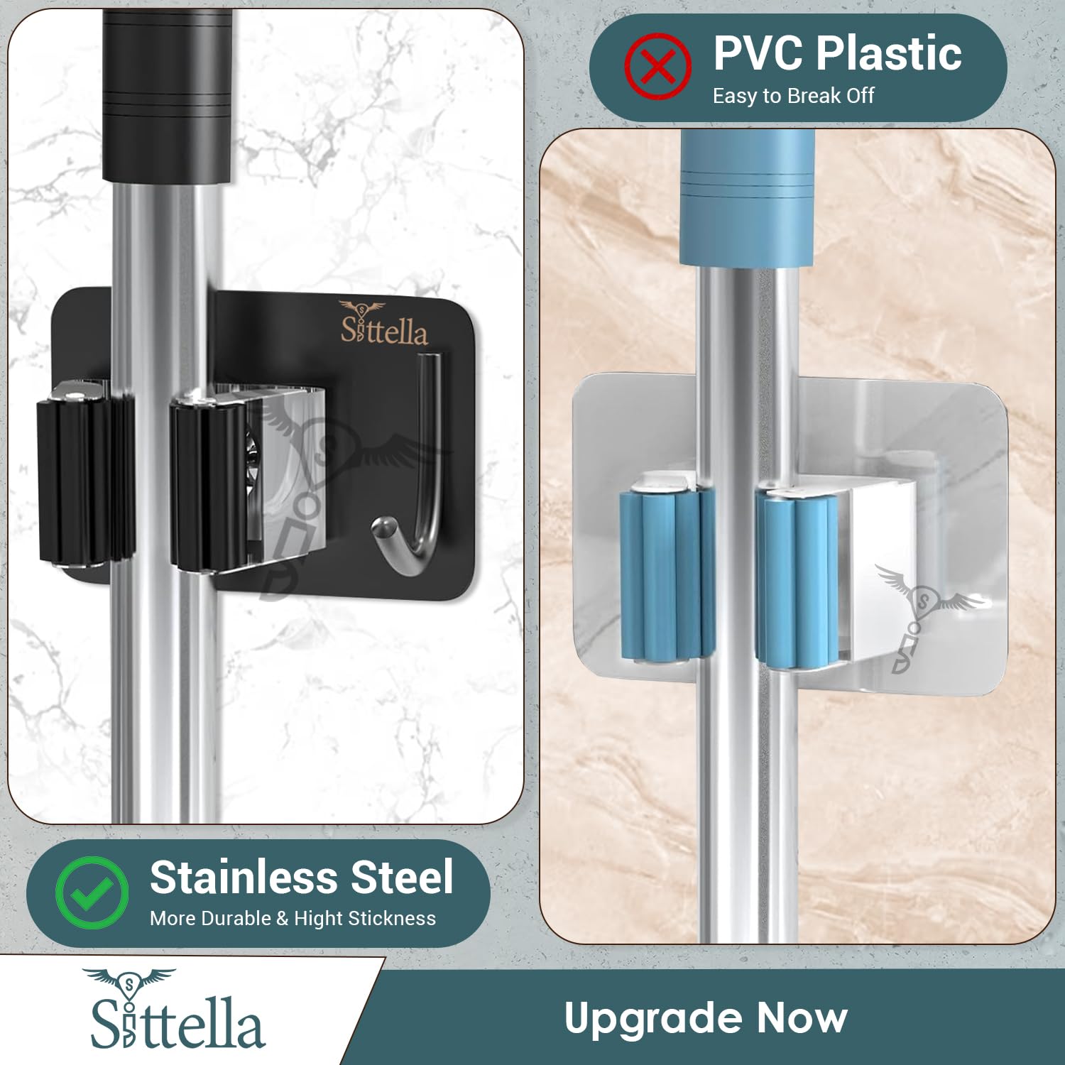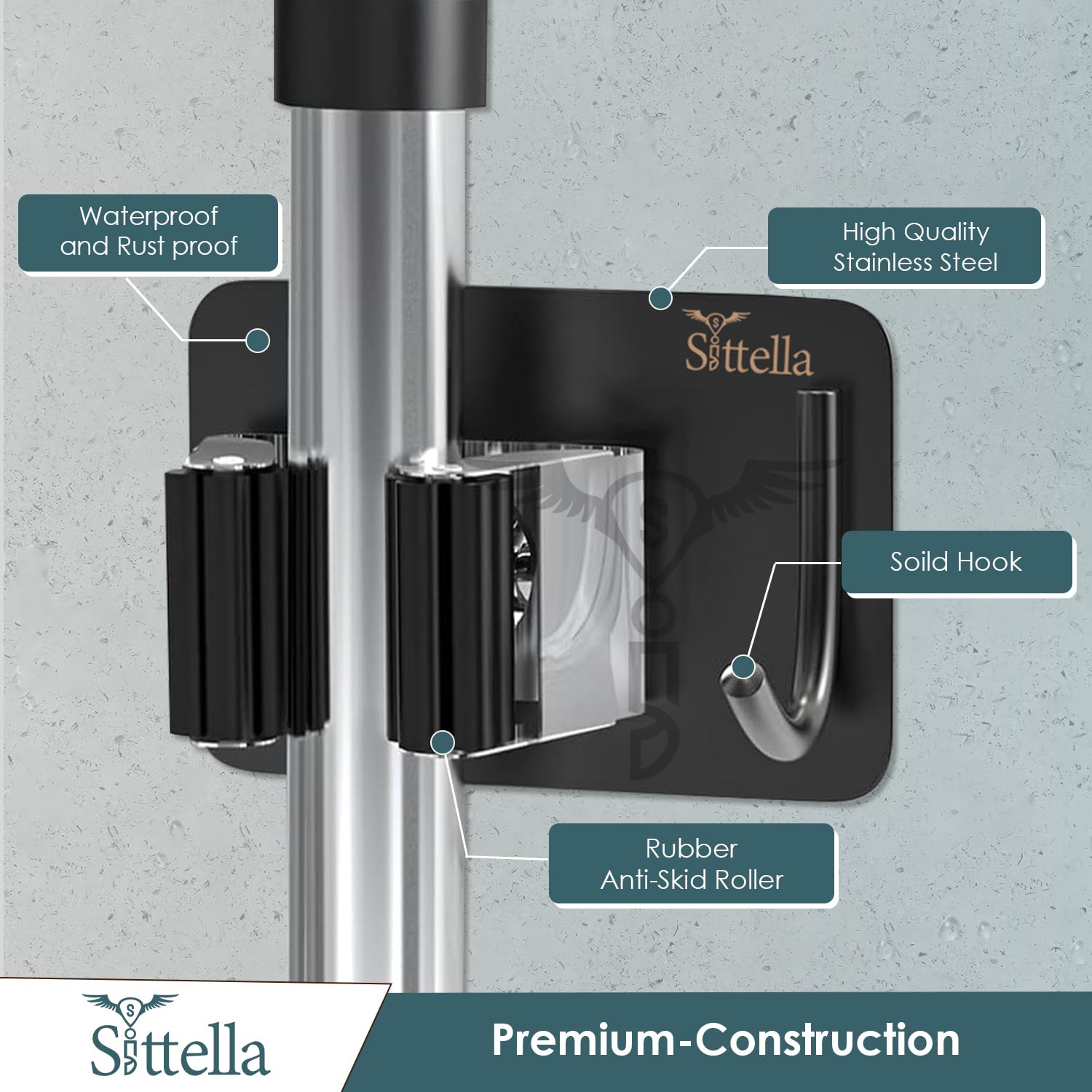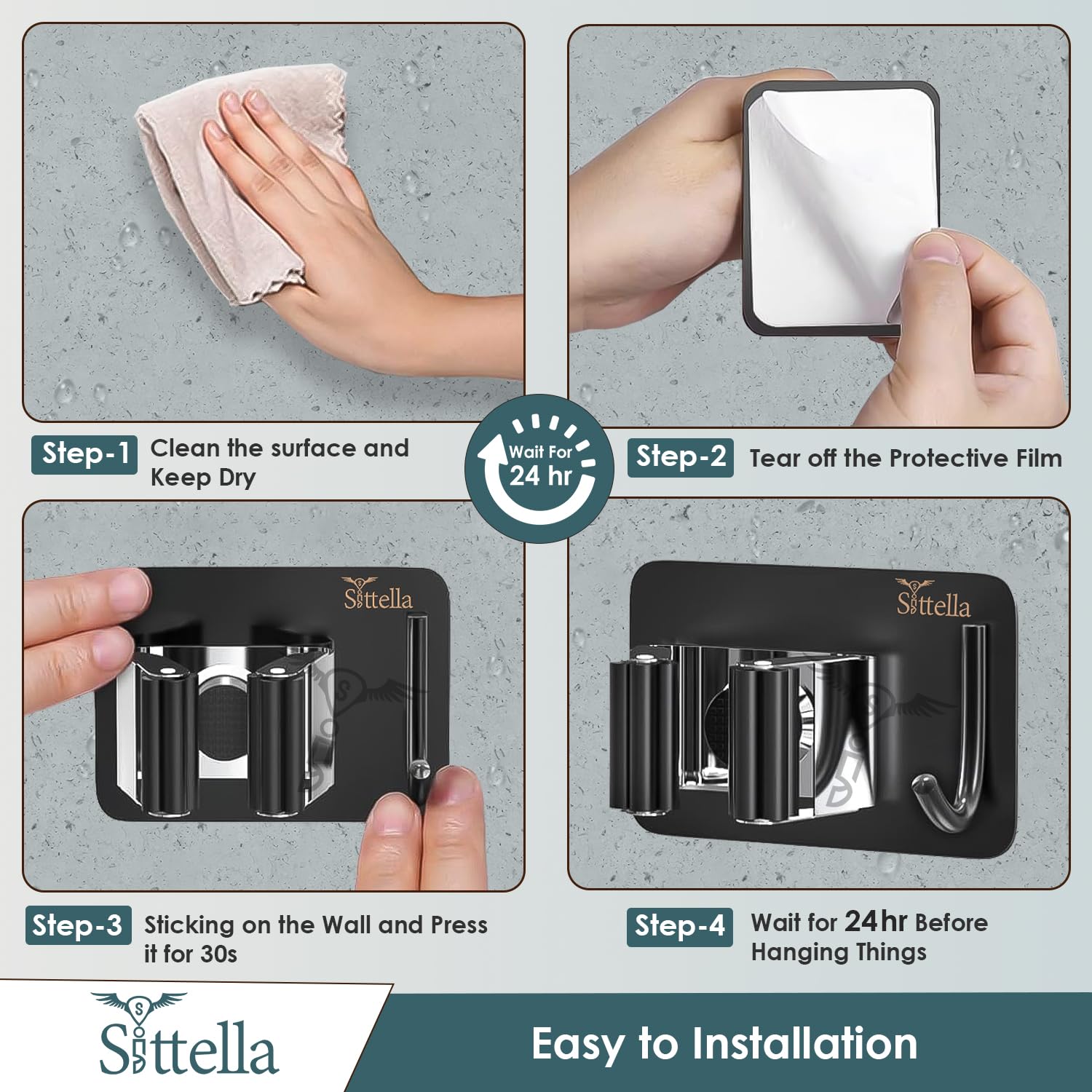 ✅HIGH-QUALITY MATERIAL: This broom mop wall mount holder made from premium 304 stainless steel. ✅STURDY AND DURABLE: This broom holder is well made and heavy-duty, rust proof and more sturdy and durable than plastic or wooden ones, build to resist daily scratches, corrosion and tarnishing. ✅NON-SLIP DESIGN: The upgraded broom organizer has a non-slip design with a triangular structure and soft silicone rollers, ensuring a strong grip and preventing items from falling, even when wet. ✅ONE HANDED PUSH: It's easy to take and put back cleaning items. Non-slip grip locks secure tools like brooms and dusters with a one-handed push. ✅STRONG STORAGE CAPACITY: The broom holder has 1 Unit Clamp 1 Utility Hook, Its suitable for mop, rake, broom, rag, wet spray, snow shovel, etc. It can bear about 3.3 LBs / 15kg. ✅SIZE & COLOR: Length- 8.5Cm, Width- 6.5Cm & Color- Black & Product Includes- 1 Piece ✅EASY TO INSTALL: The mop holder come with an adhesive tape. Just clean the surface, peel the tape frame and stick the holder on wall.
