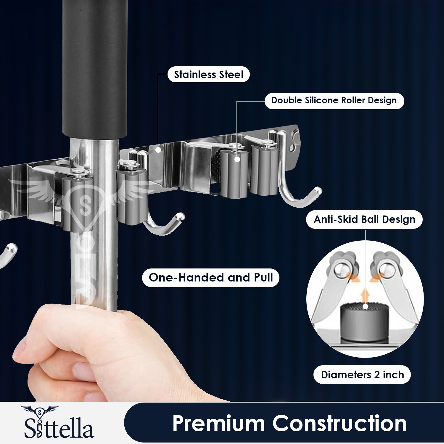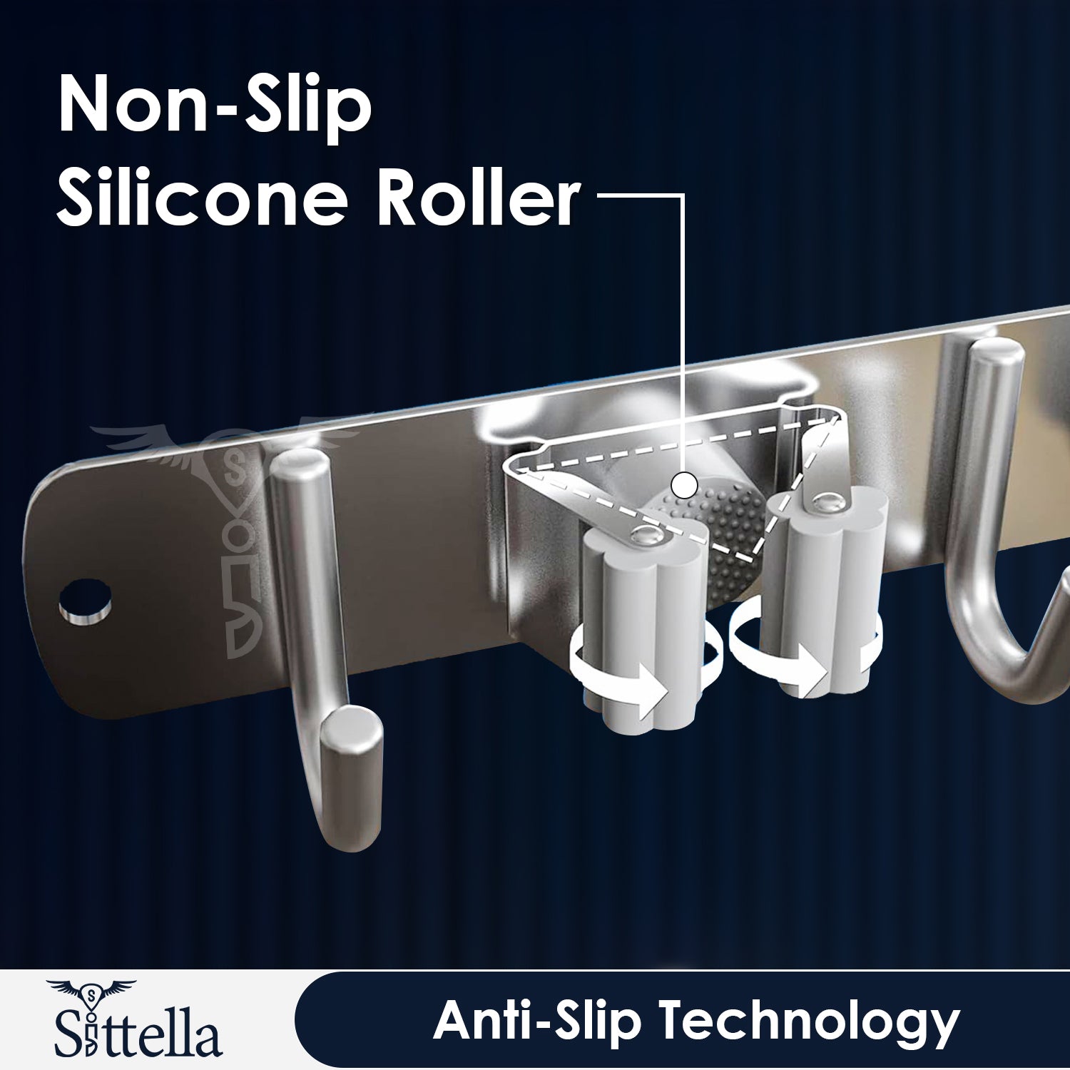 ✅ STURDY AND DURABLE: This broom holder is well made and heavy-duty, rust proof and more sturdy and durable than plastic or wooden ones, build to resist daily scratches, corrosion and tarnishing. ✅ NON-SLIP DESIGN: The upgraded broom organizer has a non-slip design with a triangular structure and soft silicone rollers, ensuring a strong grip and preventing items from falling, even when wet.