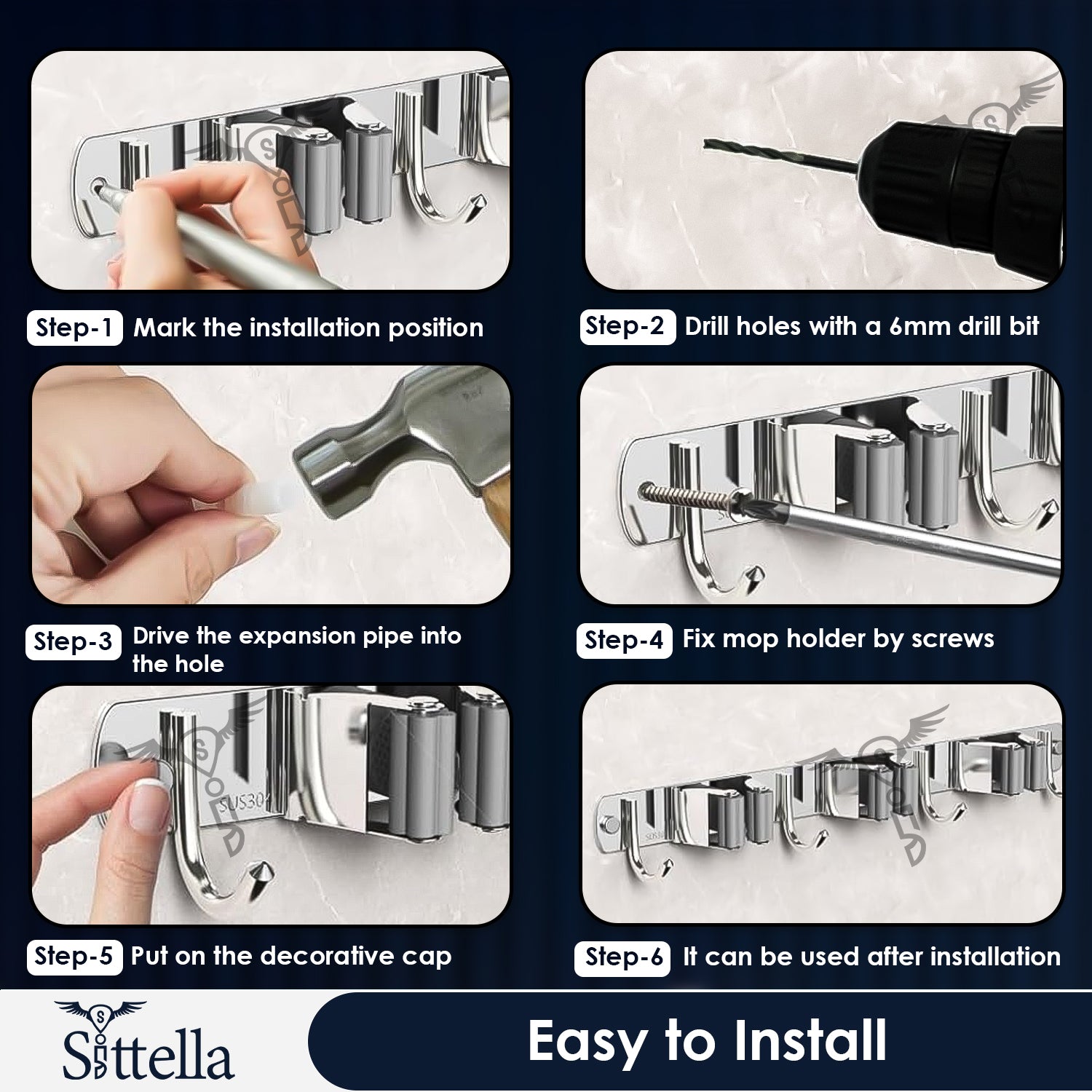 ✅ HIGH-QUALITY MATERIAL: This broom mop wall mount holder made from premium 304 stainless steel.